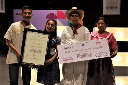 *En la categoría de “Labor Social”, el grupo intercultural “Huellas Oaxaqueñas”, fue premiado con este galardón