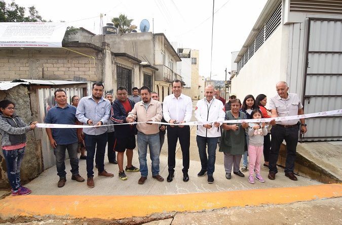 Oaxaca, Oaxaca, Domingo 27 de Octubre, 2019 (Fuente: Comunicado).- Con una inversión de 718 mil 172 pesos 26 centavos, el Presidente Municipal de Oaxaca de Juárez, Oswaldo García Jarquín, inauguró la pavimentación de concreto de la calle Plan de Ayala de la colonia Ejidal, en la Agencia Municipal de San Martín Mexicapan.