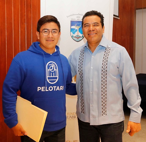 Asimismo, fue felicitado por el rector de la Universidad, doctor Eduardo Bautista Martínez, quien le hizo entrega de un reconocimiento, por enaltecer el nombre de la institución y ser Orgullo-UABJO.