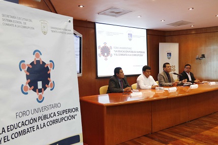 Ello durante su participación en el Foro universitario “La educación pública superior y el combate a la corrupción”, organizado por la Contraloría General en Coordinación con la Secretaría Ejecutiva del Sistema Estatal del Combate a la Corrupción (SESECC).
