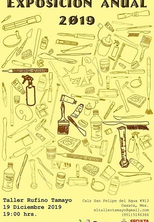 Oaxaca, Oaxaca, Miércoles 18 de Diciembre, 2019 (Fuente: Comunicado).- La Secretaría de las Culturas y Artes de Oaxaca (SECULTA) invita a la ciudadanía oaxaqueña y visitantes a la inauguración de la Exposición Anual en el Taller Rufino Tamayo que se llevará a cabo este 19 de diciembre, a las 19 horas en calzada San Felipe del Agua número 913, Oaxaca de Juárez.