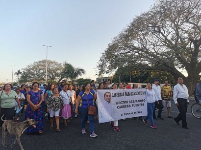 Con una pancarta donde aparece la imagen del científico y una leyenda de “Libertad para el científico”, la marcha partió del crucero principal de la comunidad hasta llegar a la explanada municipal, en donde se llevó acabo un festival que nombraron: “A Favor de Héctor Alejandro Cabrera Fuentes, donde además de música también hubo venta de comida típica y suvenires con la finalidad de recaudar fondos para el apoyo a la familia del científico en el pago del abogado que lleva su situación legal.