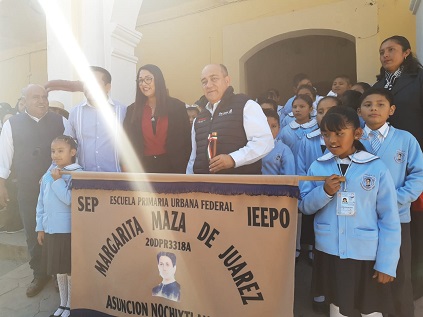 Lo anterior lo expresó en el evento celebrado en la ciudad de Asunción Nochixtlán, como parte de una gira de trabajo que realiza por esta región Mixteca, donde también realizó el abanderamiento e hizo la segunda entrega de mobiliario y equipos a las escuelas de nivel básico con presencia en esta demarcación.