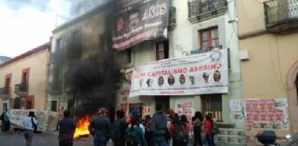 Oaxaca, Oaxaca, Miércoles 18 de Marzo, 2020 (Fuente: Agencias).- En Oaxaca, estudiantes normalistas tomaron las instalaciones de la sección 22 de la Coordinadora Nacional de los Trabajadores de la Educación (CNTE) para exigir plazas, quemando llantas frente a la sede sindical, por lo que, por poco, se incendia la puerta de entrada.