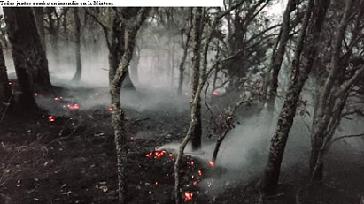 Juntos combaten incendio en la Mixteca