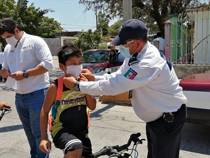 *Regalaron y pusieron cubrebocas a niños de Putla