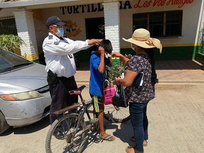 Oaxaca, Oaxaca, Martes 12 de Mayo, 2020.- Este lunes policías estatales tuvieron una muy interesante y agradable acción, mismos que recorrieron las calles del municipio de Putla, ubicado en la región Sierra Sur del estado, regalando y poniendo cubrebocas a los niños.