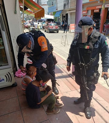 Incluso, los mismos uniformados estatales, poniendo el ejemplo, usando cubrebocas y caretas.
