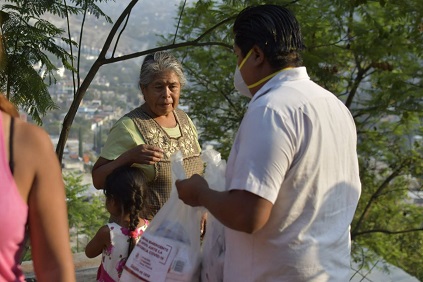 La funcionaria resaltó que con la entrega de apoyos alimenticios e insumos sanitarios por parte de servidores públicos de las direcciones de Desarrollo Humano y de Seguridad Pública, Vialidad y Protección Ciudadana, en colaboración con la Subdirección de Agencias y Colonias, se ha ayudado y concientizado a la ciudadanía para que se siga respetando la Jornada Nacional de Sana Distancia y las disposiciones emitidas por el Cabildo de Oaxaca de Juárez que buscan reducir la cadena de contagio del nuevo coronavirus.