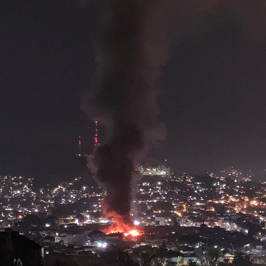 Desde diversos municipios y zonas aledañas a la capital del estado, se observaba una gran columna de fuego, lo que hacía más dramática la noche; incluso, por momentos cuando trataban de apagar las llamas, tronaron algunos cilindros de gas y también se indicó de una bodega clandestina de fuegos pirotécnicos. Literalmente el Mercado de Abasto se convirtió en un descomunal infierno.