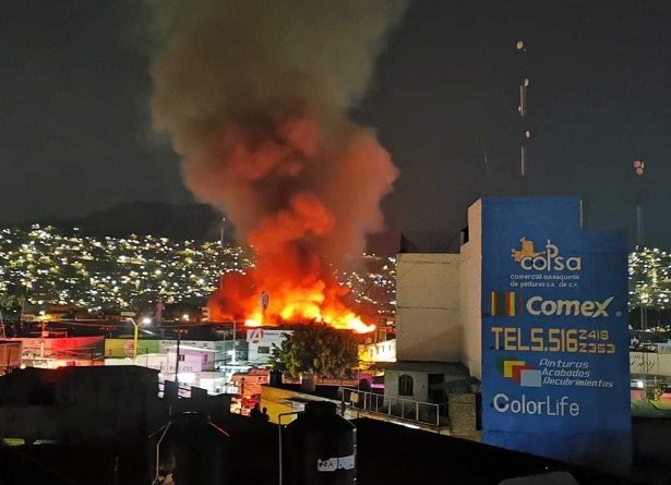 Oaxaca, Oaxaca, Jueves 28 de Mayo, 2020 (Fuente: Agencias).- En Oaxaca, un incendio generado en una caseta de artesanías, en la zona seca del Mercado de Abasto, se salió de control y consumió parte de la zona de comedores, además de una bodega clandestina de pirotecnia, con un saldo de varios comerciantes intoxicados.