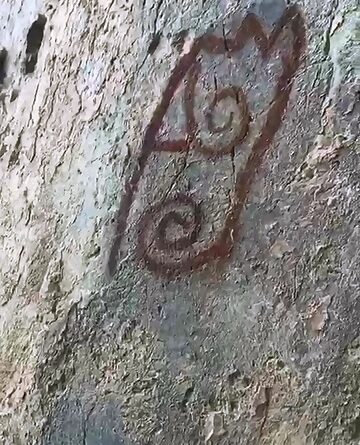 Pero, al observar el desprendimiento, se dan cuenta que hay dos dibujos que a simple vista parecen rupestres.
