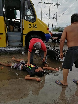 Afortunadamente el chófer del urbano no se dio a la fuga y brindó el apoyo al motociclista, quien se encontraba en muy malas condiciones.