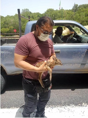 Oaxaca, Oaxaca, Sábado 18 de Julio, 2020 (Fuente: Agencias).- El Director y personal de Protección Civil y Bomberos Huatulco, este viernes realizaron un emotivo rescate de un ciervo de un mes aproximado de edad.