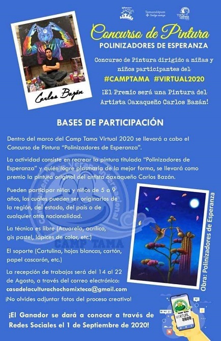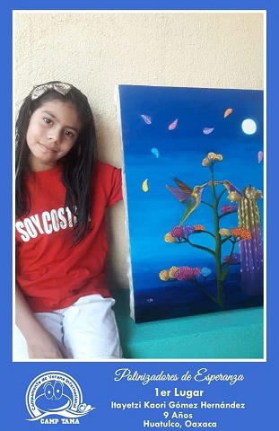 Oaxaca, Oaxaca, Miércoles 02 de Septiembre, 2020 (Fuente: Agencias).- Entre más de 80 participantes del estado, del país y del extranjero; Itayetzi es la ganadora del Concurso de Pintura «Polinizadores de Esperanza» del CampTama Virtual2020, originaria de Huatulco, del distrito de Pochutla, región Costa de Oaxaca.