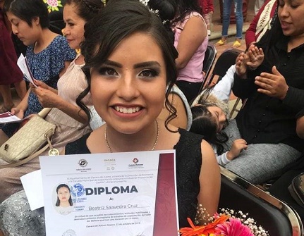 “Nos llena de orgullo ser partícipes e impulsores de la preparación y logros de todas y todos nuestros estudiantes, como lo es el caso de la egresada del curso de Belleza, Beatriz Saavedra Cruz, quien con mucha dedicación, y tras 10 meses de capacitación de la instrucción de este oficio, concretó su sueño de consolidar e inaugurar un salón de belleza o estética en su población de origen, San Francisco Lachigoló”, celebró la funcionaria municipal al reconocer el esfuerzo materializado de la alumna egresada de la EMCAI.
