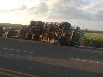 Los ventarrones provocaron la volcadura de un camión tipo tórton que transportaba granos. La volcadura ocurrió en La Ventosa, donde las rachas de viento son intensas.