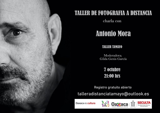 Oaxaca, Oaxaca, Miércoles 07 de Octubre, 2020 (Fuente: Comunicado).- La Secretaría de las Culturas y Artes de Oaxaca (SECULTA), a través del Taller de Artes Plásticas “Rufino Tamayo”, invita a participar en la charla con el fotógrafo Antonio Mora, que se llevará a cabo este miércoles 7 de octubre, a las 21:00 horas, a través de la plataforma de Zoom.