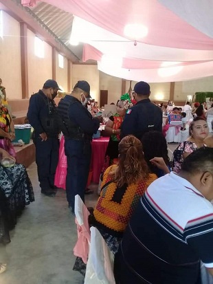 A bordo de dos patrullas arribaron al sitio, ubicado en la séptima sección de la ciudad de Juchitán, región Istmo de Oaxaca, donde los oficiales responsables de las unidades de vigilancia dialogaron con la persona organizadora: Yesenia Jiménez Salinas.