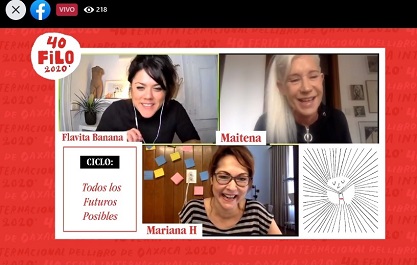 Oaxaca, Oaxaca, Sábado 24 de Octubre, 2020.- Las ilustradoras y humoristas gráficas Flavita Banana y Maitena hablaron sobre su trabajo y cómo refleja su vida personal y de muchas mujeres en la charla Abajo el amor y arriba… nosotras. Viñetas para el desengaño, que formó parte del ciclo Todos los futuros posibles de la 40 Feria Internacional del Libro de Oaxaca (FILO), que este año se celebra de manera virtual.