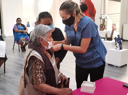 Por ello felicitó a los galardonados, quienes recibieron el Reconocimiento a la Trayectoria Artística en arte popular de Oaxaca 2020, y los invitó a continuar con el legado de cultura y arte de Oaxaca.