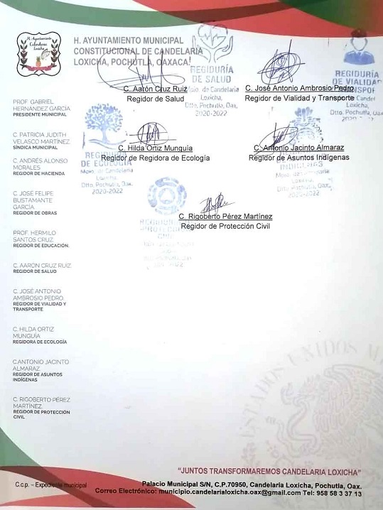 Lo anterior, se señala en el comunicado oficial, es con el fin de ayudar a nuestro planeta tierra a combatir el calentamiento global y a la disminución de la contaminación ecológica del municipio de Candelaria Loxicha.