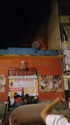 Oaxaca, Oaxaca, Miércoles 28 de Octubre, 2020 (Fuente: Agencias).- Un incendio se registró en el interior del emblemático pasillo de “Las Carnes Asadas” o “Del Tasajo”, que está ubicado en el interior del mercado “20 de Noviembre”, en el Centro Histórico de la capital de Oaxaca, donde no se reportaron lesionados ni víctimas fatales, sólo daños materiales en dos locales, reportaron autoridades del cuerpo de Bomberos de Oaxaca.