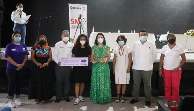 Ante la subsecretaria de Promoción, Participación y Equidad de la SMO, Angélica Avilés Álvarez y el director de BanOaxaca, Igmar Matus, Rogelia González reconoció en Ana Vásquez a una aliada, que, junto con el gobernador, trabajan para atender los principales requerimientos de las mujeres que salen huyendo de sus casas por la violencia familiar.