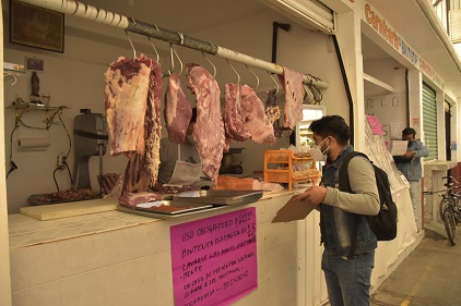 El verificador sanitario de la Subdirección de Control Sanitario, Said Carlos Velásquez, explicó que las acciones consisten en constatar que se practiquen los requisitos sanitarios básicos del manejo de alimentos como es el uso, por parte de las y los expendedores, de ropa sanitaria completa, que no tengan uñas largas ni pintadas, que cuenten con cloro y hagan uso de este durante la limpieza recurrente de sus lugares de trabajo; así también, se supervisa que cuenten con alcohol, el uso obligatorio de cubrebocas, la aplicación de gel antibacterial tanto para los locatarios como para el público y visitantes.