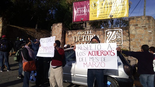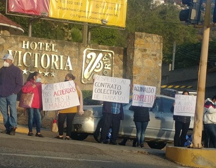 Oaxaca, Oaxaca, Martes 01 de Diciembre, 2020 (Fuente: Agencias).- En Oaxaca, un grupo de 200 trabajadores de dos hoteles inició este martes un paro general para exigir a los dueños de los establecimientos el pago de salarios justos y su aguinaldo completo, porque los empresarios se niegan a cumplir con esta obligación, advirtiendo que han reportado pérdidas económicas a consecuencia de la pandemia por la COVID 19.