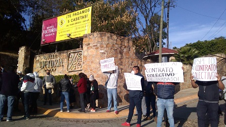 Los inconformes, integrantes del Sindicato de Trabajadores de Hoteles, Restaurantes, Cafés, Bares, Similares y Conexos de la Confederación Nacional de Trabajadores de México (CTM), se manifestaron con pancartas y mítines enfrente de diversos hoteles, entre ellos el hotel “Victoria”, “Fortín Plaza”, ubicado en el cerro del Fortín, además del “Misión de Los Ángeles”.