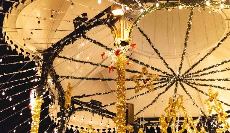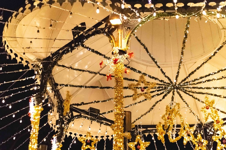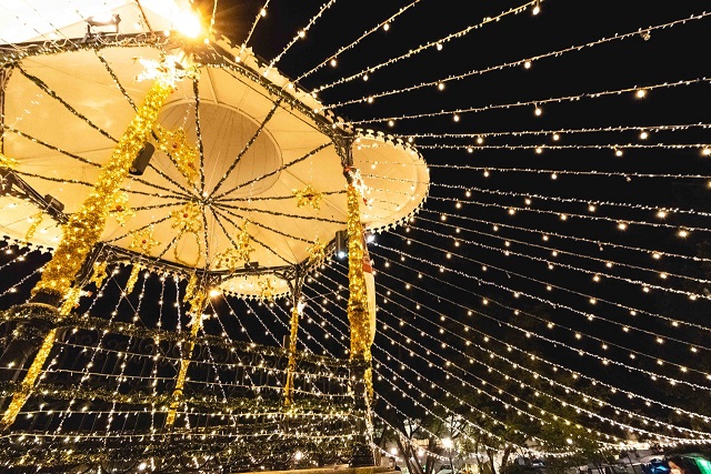 Estas tareas de embellecimiento se iniciaron en días pasados por personal del Departamento de Eventos Especiales de la dependencia, quienes instalaron en el zócalo 3 mil 600 bombillas led de 1w y 370 series de luz en tono dorado, así como el decorado del quiosco con figuras de nochebuenas, angelitos, esferas, estrellas y otros elementos multicolores.