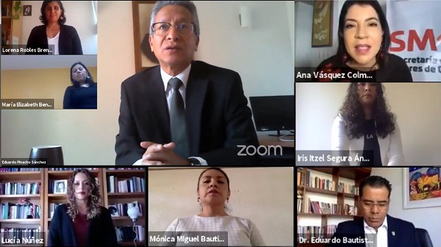 En la ceremonia virtual, en presencia de la secretaria de las Mujeres de Oaxaca, Ana Isabel Vásquez Colmenares Guzmán; el rector de la UABJO, Eduardo Bautista Martínez y la directora General Adjunta de Igualdad de Género del Instituto Nacional de Desarrollo Social (Indesol), María Antonia González del Castillo, el titular del Poder Judicial destacó la importancia de sumar esfuerzos en la prevención de la violencia y discriminación en todas sus formas.