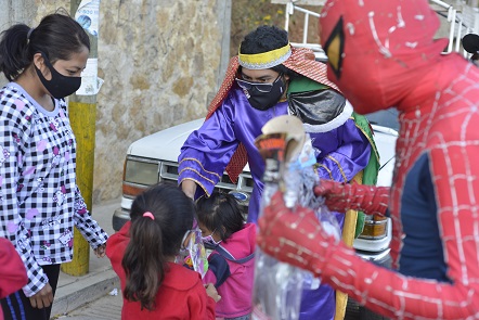 Oaxaca, Oaxaca, Jueves 07 de Enero, 2021 (Fuente: Comunicado).- Con la premisa de dibujar una sonrisa en la niñez capitalina con motivo del Día de Reyes, como lo ha encomendado el Presidente Municipal Oswaldo García Jarquín, personal del Ayuntamiento de Oaxaca de Juárez, visitó hogares de las agencias de San Juan Chapultepec y San Martín Mexicapan para llevar obsequios a la población infantil en compañía de Melchor, Gaspar y Baltazar.