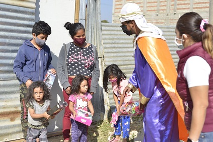 Oaxaca, Oaxaca, Viernes 08 de Enero, 2021 (Fuente: Comunicado).- Por tercer día consecutivo, las y los servidores públicos del Ayuntamiento de Oaxaca de Juárez han dado cumplimiento a la especial encomienda del Presidente Municipal, Oswaldo García Jarquín, de llevar alegría, cariño y esperanza a las y los infantes que habitan en zonas de alta pobreza, con motivo del tradicional Día de Reyes.