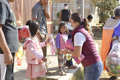 Acatando los protocolos sanitarios, en la prolongación de Narciso Mendoza, de la agencia de San Luis Beltrán, la directora de Desarrollo Humano, Evelyn Sally Martínez Rasgado, enfatizó que esta iniciativa municipal busca llevar esperanza a la niñez y también ayudar a las madres y padres de familia en una fecha tan especial, ante el impacto económico causado por la pandemia de COVID-19.