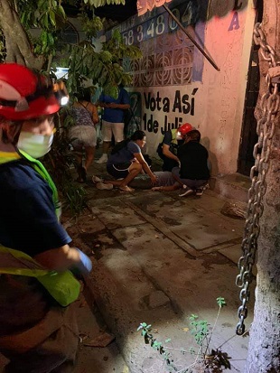 Oaxaca, Oaxaca, Lunes 18 de Enero, 2021 (Fuente: Texto y fotos de Adub Santos).- Una mujer cayó la noche de este domingo de la azotea de una vivienda, en el sector U2, Huatulco, del distrito de Pochutla, región Costa de Oaxaca, cuando se encontraba con una niña pequeña en los brazos; las dos cayeron de aproximadamente 3 metros de altura, resultando la mujer con lesiones serias en la cabeza.