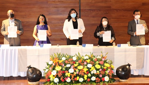 En el auditorio del Archivo General del Estado de Oaxaca, María Antonieta Velásquez Chagoya, comisionada presidenta del IAIPO; Gustavo Meixueiro Nájera, consejero presidente del IEEPCO; Elizabeth Bautista Velasco, magistrada presidenta del TEEO; Rubén Vasconcelos Méndez, Fiscal General del Estado de Oaxaca y Esther Araceli Pinelo López, fiscal especializada en delitos electorales; firmaron este convenio de colaboración que tiene por objeto establecer las bases de colaboración para que el IAIPO capacite a las instituciones que participan para que fomenten, difundan y garanticen el derecho de acceso a la información, gobierno abierto, transparencia proactiva y la protección de datos personales.