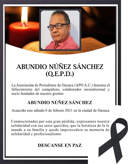 Oaxaca, Oaxaca, Domingo 07 de Febrero, 2021 (Fuente: Willy López Torres).- “Pasando la pandemia nos echamos un mezcalito”, me dijo el Jefe Abundio la noche gélida del agonizante enero. Su voz afable, vía celular, era clara, no había huella de enfermedad respiratoria alguna. Hoy sábado 6 de febrero me enteró que ha partido, que nos ha abandonado, que ya no hubo oportunidad de estrecharnos en un abrazo, ni un apretón de manos de amigo fiel y verdadero.