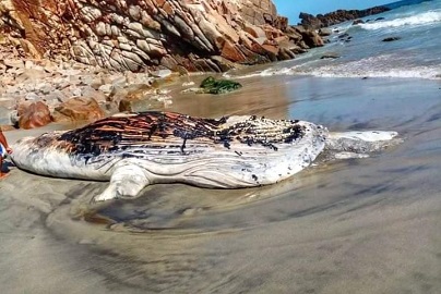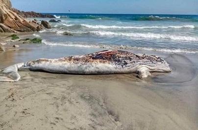 Ballena varada en playas de Oaxaca