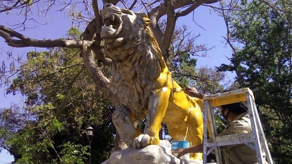 Oaxaca, Oaxaca, Jueves 11 de Marzo, 2021 (Fuente: Comunicado).- Como parte del programa de mantenimiento a parques y jardines, así como de recuperación de espacios públicos que emprende el Ayuntamiento de Oaxaca de Juárez, la Subdirección de Imagen Urbana y Conservación de la Dirección de Servicios Municipales inició trabajos de rehabilitación y mantenimiento en las esculturas conocidas como los leones del Paseo Juárez “El Llano”, tras más de 10 años sin ningún tipo de intervención para su cuidado.