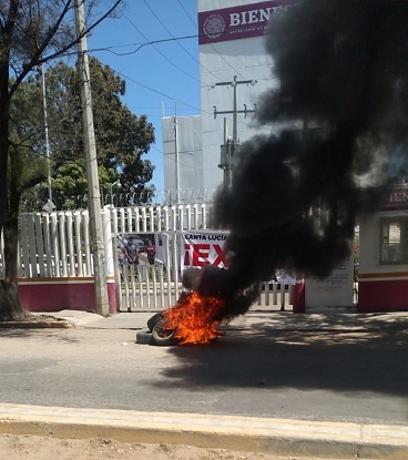 En las protestas prendieron fogatas y quemaron llantas, además que se pintarrajearon algunos módulos y se vandalizó la sede del Banco del Bienestar.
