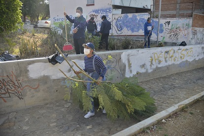 “Por instrucciones del Presidente Municipal, Oswaldo García Jarquín nos encontramos haciendo la limpieza general de esta importante zona donde escurre mucha agua en temporada de lluvias, así como el mantenimiento de las áreas verdes a fin de coadyuvar en la disminución de contagios de COVID-19”, dijo Raúl Ortiz.