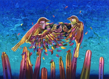 El pintor reconoce que, a pesar de los tiempos oscuros que se viven en el mundo, hay voluntades que se llevan a cabo para solidarizar y apoyarse los unos a los otros. Como en otros tiempos también lo hacían nuestros pueblos originarios.