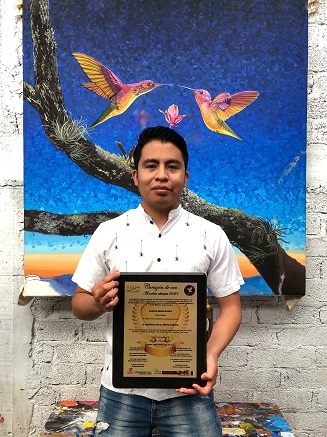 Este fue el mérito otorgado por la trayectoria profesional del pintor quien, a su corta edad, ya es presentado como uno de los estandartes del arte chocholteco, de la zona de la Mixteca de Oaxaca. Por plasmar en sus obras “sentimientos, emociones y sueños, como los que tienen deseos de vivir pese a toda adversidad”, palabras con las que lo describe el presidente José Mario Medina.