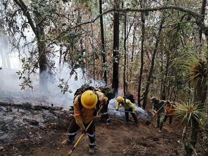 Manifestó que los brigadistas de la Comisión Estatal Forestal (COESFO) han acudido de forma oportuna a cada uno de los incendios presentados, también se ha contado con la colaboración de la SEDENA, Guardia Nacional, Protección Civil, CONAFOR y por supuesto con los comuneros de las diferentes regiones.