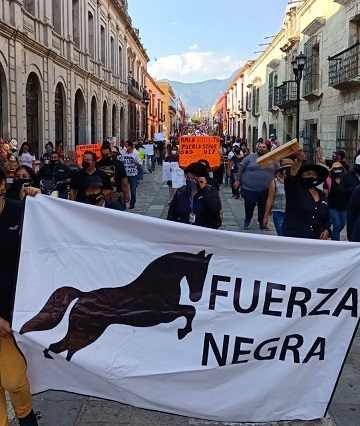 El Día de hoy ,20 de abril del año 2021, se realiza una manifestación de protesta por parte de una representación de fuerza negra, Movimiento de Reivindicación sindical del STPEIDCEO, GUARDANDO LAS MEDIDAS SANITARIAS CORRESPONDIENTES. Para Fijar nuestro posicionamiento y darlo a conocer al pueblo de Oaxaca y al Gobierno del estado. Que no estamos de acuerdo con las medidas que está imponiendo el C. GERMAN ESPINOZA SANTIBAÑES. Al interior de nuestro sindicato, violando flagrante mente la autonomía sindical para imponer a sus incondicionales y seguir lucrando, disponiendo de los dineros de nuestras cuotas sindicales y de los recursos de nuestro fondo de pensiones. En contubernio de Juan Rosas y Juan Cruz Villavicencio, en contubernio de delegados mercenarios que a cambio de un pago de miles de pesos, avalaron de manera arbitraria la miserable negociación para el trabajador sindicalizado y para ellos una lucrativa negociación, por lo que estamos denunciando públicamente estos atropellos y, al mismo tiempo, exigir a la presidenta de la Junta de Conciliación y Arbitraje, no seguirle el juego sucio a estos impostores. Caso contrario, exigiremos su renuncia, ya que está violando nuestro estatuto orgánico.