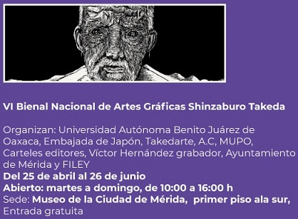 En conferencia de prensa se anunció la asistencia del artista japonés y maestro de la Escuela de Artes Plásticas y Visuales (EAPV) de esta Casa de Estudios, Shinzaburo Takeda, quien expondrá la VI Bienal Nacional de Artes Gráficas, que lleva su nombre, la cual reúne 53 piezas de diferentes técnicas gráficas y un documental.