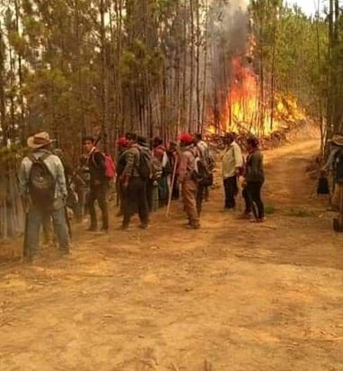 Santo Domingo Teojomulco, Sola de Vega, Oaxaca, Viernes 23 de Abril, 2021 (Fuente: Agencias).- Mujeres, ancianos, niños y al menos 400 comuneros de Santo Domingo Teojomulco, del distrito de Sola de Vega, en la región Sierra Sur de Oaxaca, luchan contra el fuego que consume al menos una extensión de mil hectáreas de tierra y que se extenderían hasta los límites con sus vecinos de Santiago Xochiltepec.