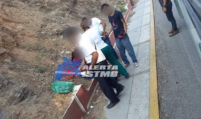 Al lugar acudió la Cruz Roja Mexicana (CRM) delegación Tehuantepec, paramédicos que trasladaron a la lesionada a un centro hospitalario para su atención médica, identificando a la víctima como Adriana L. L. R. de 22 años de edad.